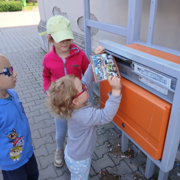 V rámci tématu Povolání si děti z mateřské školy dne 12. 6. 2025 vyzkoušely roli pošťáků. Nejprve tvořily vlastní dopisy a poté se společně vydaly na exkurzi na místní poštu. Děti, které si přinesly pohledy se známkou, je mohly vhodit do poštovní schránky.