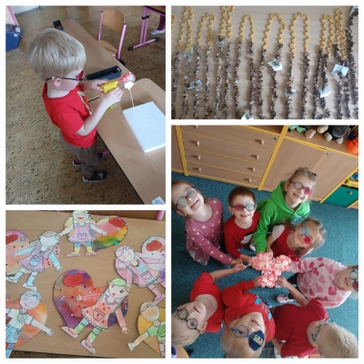 V pátek 9. 5. 2025 jsme si v mateřské škole užili červený „Srdíčkový“ den. Navštívil nás skřítek Nepořádníček, který rozházel po třídě červené hračky a kostky. Děti toho využily k různým hrám – například k rozvoji matematických dovedností či společnému stavění velkého srdce z kostek. Nakonec vše pečlivě roztřídily. Nechyběly ani soutěže, například namotávání kostiček. Děti také vyráběly dárky pro maminky – kytičky, přáníčka a korálky z brambor. Všem maminkám přejeme krásný Den matek!